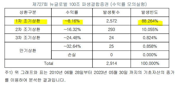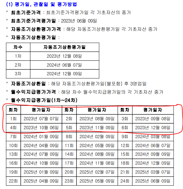 (첫번째는 4개월마다 조기상환기일 도래, 두번째는 6개월마다 조기상환 도래임. 둘다 만기 2년)