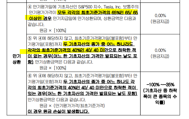 1차 조기상환 기준 값은 S&P 3,574/ 테슬라 164.19 인데
